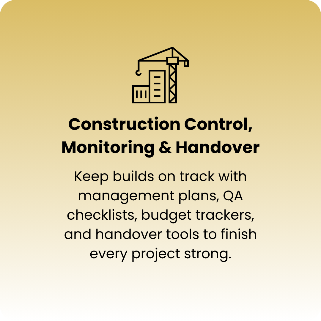 Whether you’re building a single unit or managing a complex multi-phase scheme, the development process stays the same. These templates are flexible frameworks used on real projects of varying scales. They have been designed so you can adapt them to any development project.